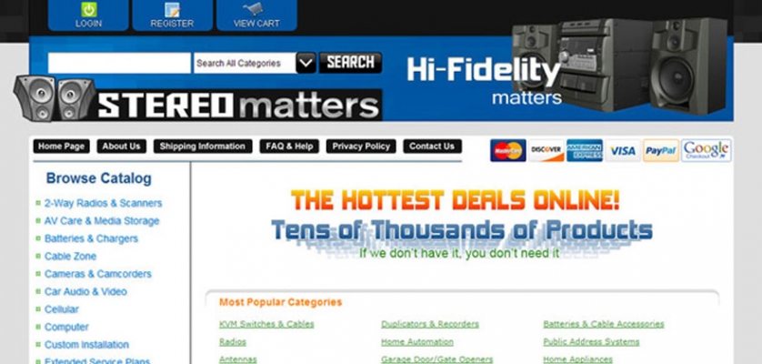 This website was developed as a turn-key drop-ship supplier website. http://www.stereomatters.com/